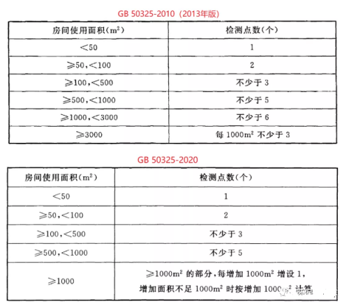 (4)對室內污染物濃度檢測點數設置進行了調整。本標準中調整了使用面積大于1000平方米的房間檢測點數設置。